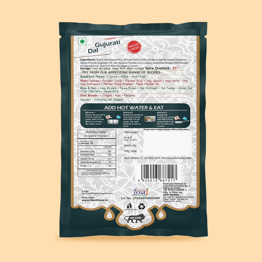 - Makes Approx 200-210 Gms (Rehydrated Weight).