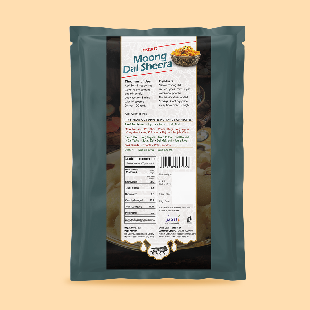 - Ingredients: Yellow moong dal, Milk, Sugar, Ghee, Cardamom powder