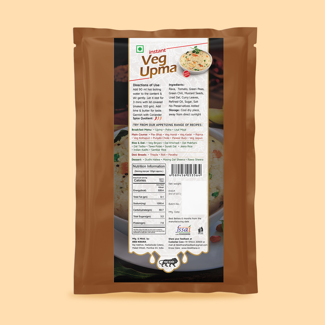 - Ingredients: Rawa, Groundnut, Udad Dal, Sugar, Salt, Green Chilli, Refined Groundnut Oil, Kadi patta, Mustard